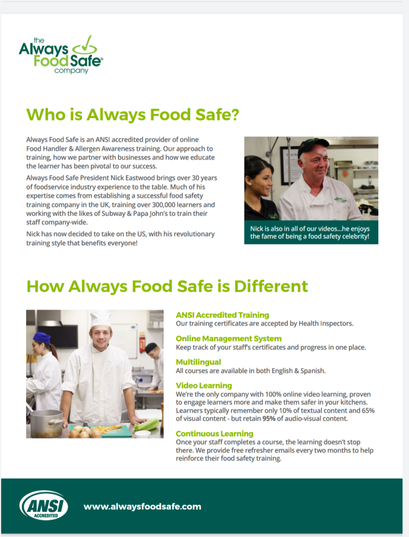 Here's some interesting facts about Moore Markets For You's "Food Safety Management Certification" program sponsored by "The Always Food Safe" Company.