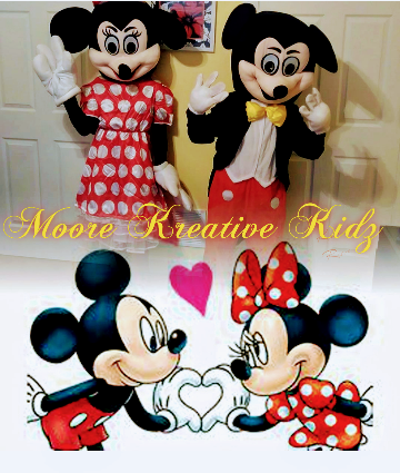 Kids Party Entertainment Mickey & Minnie & more Mascot Costumes. Are you ready for the ultimate entertainment experience? 12 and 13 year old brother and sister duo, Knowledge and Angel, team up in explosive performances that can't be referenced as anything less than remarkable. The children love the sizes of the characters, and are more comfortable with our characters, so we rarely have a cry-er at any events. Watch the sibling duo interact spontaneously in sync as brother Mickey remains cool and conservative and sister Minnie remains feisty and always steals the show. You will be amazed that these are actually children behind the mask.